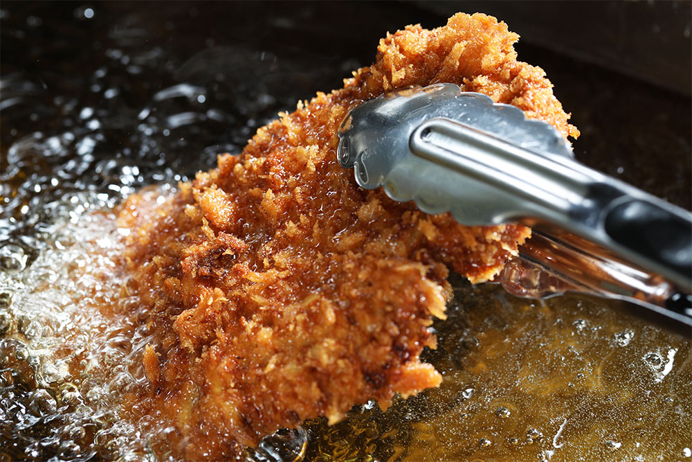 揚げ物は油で変わるといわれています。特殊配合したブレンドの油でカラッとサクサクに仕上がります。