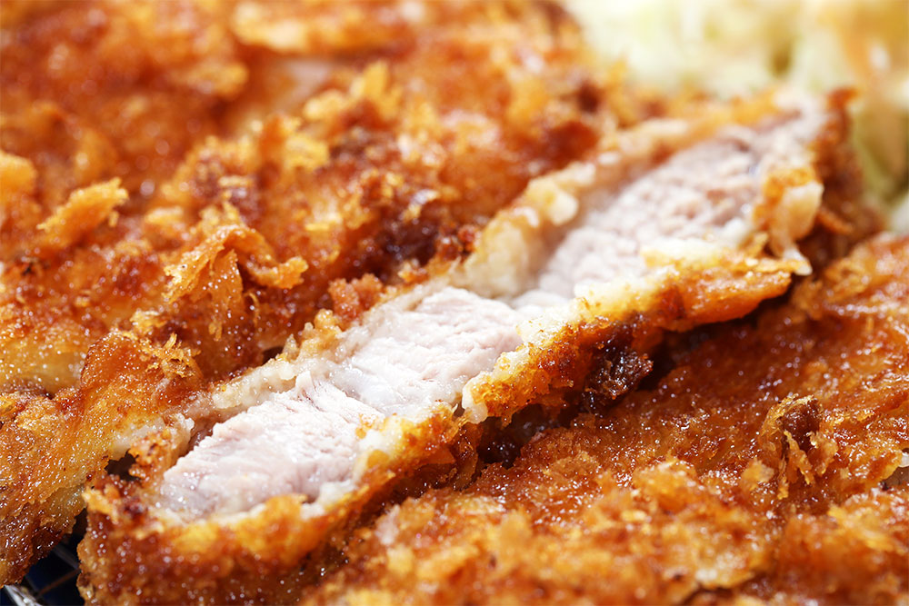 油の配合、パン粉の配合にもこだわっていますが、特に10種類の調味料を下味に使用しております。そのあとにパン粉をつけ、揚げていきます。豚肉だけではなく工程すべてに拘り仕上げます。咲々豚々のカツは一味違います。是非お楽しみに足をはこんでください。