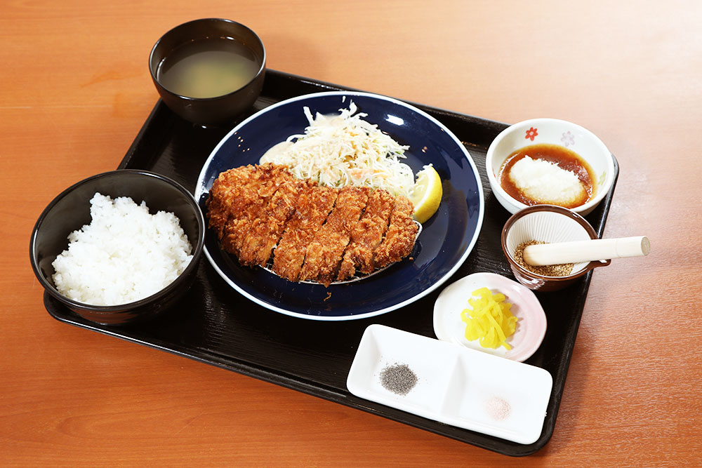 食材には滋賀のお野菜とお米をふんだんに使用しております。写真は当店イチオシのかつ丼です!ボリューム満点みそ汁つきで、温まってか帰っていただける商品です。